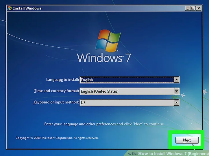 15、选择您的 Windows 安装程序选项。加载 Windows 安装程序后,您将看到一个窗口。使用下拉菜单选择您的首选语言、键盘类型和时间/货币格式,然后单击右下角的下一步。