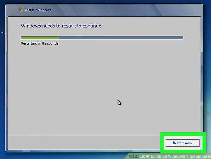 22、重新启动计算机。完成安装 Windows 7 并移除 USB 驱动器后,重新启动计算机并使其正常启动。