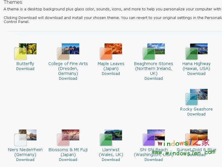 Windows7beta1主题微软官方下载,其实系统自带了不少的主题,有些隐藏主题大家可以找出来,具体请参考网站或论坛以前的文章。但微软在官方也放出了不少的主题,喜欢