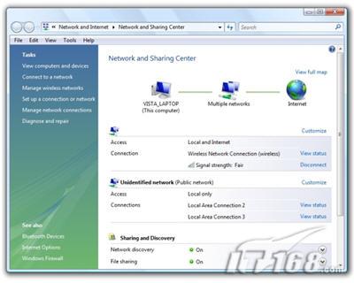 看一下上图中的功能设置,如果你以前从来没有使用过Vista,那么请你迅速的告诉我如何才能修改我的无线网卡的IP地址!我想你做不到。我认为微软可能把这些选项分散到完全不同的地方了,它们应该更加清晰易用。