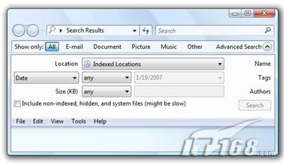 如同原来一样没什么变化。早在Windows XP SP2中的搜索功能,微软就设计的混乱不堪,对此我已经十分痛恨。它已经如此多次的“欺骗”我,让我以为搜索的文件已经丢失或根本不存在。