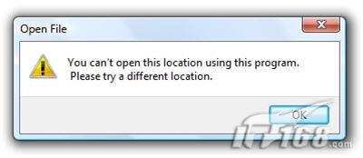 从图中,我们看到,Vista告诉我们不能使用这个程序打开这个网址,请选择其他程序打开,但是你为什么要显示它呢?