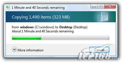 可以肯定的是,微软把Vista的用户界面设计的非常酷,外观时髦的进度条无处不在,但是功能强大的复制功能在哪儿呢?我非常痛恨的是,当我在进行一次包含5000个文件的拷贝的时候,仅仅因为其中一个文件无法打开,拷贝工作就半途而废。更有甚者,当你开始拷贝一个远程文件到本地的时候,如果远程文件夹不响应了,那么你的所有的浏览文件夹操作将被锁定。是的,这种现象在Vista中依然存在。在我使用Vista的一个半月中,我不得不几次选择杀死explorer进程。微软可以在漂亮的界面上花费更多的时间,为什么不在内在功能上投入更多呢?