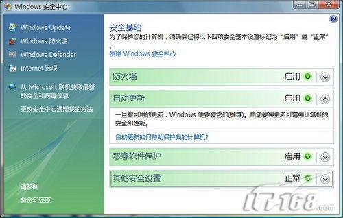 从WindowsXP开始,Windows就提供了一个名为“安全中心”的功能,包括自动更新、防病毒软件、防火墙等,一方面可以增强系统的安全性,另一方面将众多安全方面的设置集中在一个界面