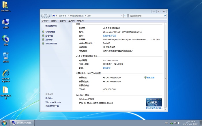 系统无任何OEM信息并完美激活windows7操作系统,这才是你的专属。