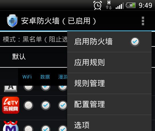 安卓防火墙(安卓防火墙2.3.0)是DroidWall的衍生版本,解决部分4.x系统DroidWall无效的问题。付费版和免费版没有区别,仅代表对作者工作的肯定。 Android的防火墙有所有的droidwall能力。它支持Android 2.2+。 如果你安装了Android的防火墙和发现软件工作不正常,请安装BusyBox和终端模拟器。这两个应用程序都可以在游戏商店找到的。