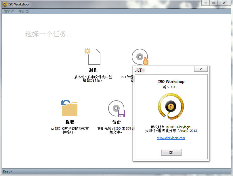 ISO Workshop 是一款非常不错的免费ISO镜像工具,支持ISP提取、备份、转换、刻录,包括CD、DVD、蓝光光盘。在任何格式,您可以轻松地再现原CD、DVD和蓝光。ISO Workshop操作简洁,主界面有四个大图标:从ISO提取文件、备份光盘镜像数据、转换ISO到其他镜像格式、刻录ISO到CD或DVD光盘。