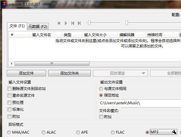 XRECODE是一款相当简洁的的转换软件,支持常见的MP3、WMA、WAV、OGG、APE、FLAC等格式的转换。