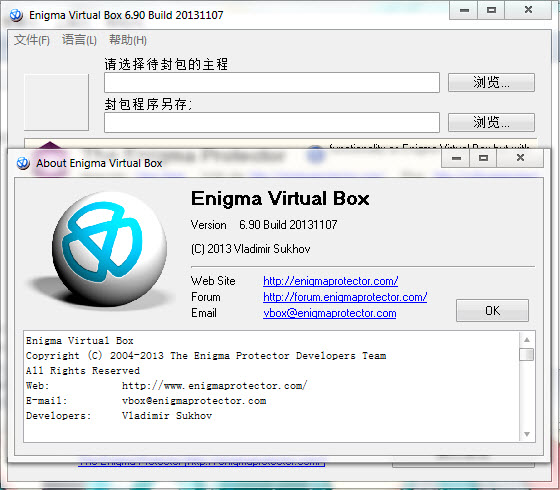 Enigma Virtual Box 是免费的软件虚拟化工具,它可以将多个文件封装到您的应用程序主文件,这样您的软件就可以制作成为单文件的绿色软件。Enigma Virtual Box 支持所有类型的文件格式,包括动态链接库 (*.dll), ActiveX/COM (*.dll, *.ocx), 视频/音频文件 (*.avi, *.mp3), 文本文件 (*.txt, *.doc) 等。虚拟化后的软件不释放任何临时文件到您的硬盘,文件模拟过程仅在内存中运行。