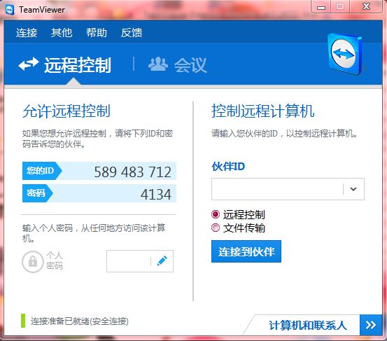 两台电脑上同时运行 TeamViewer。首次运行时TeamViewer 会自动生成一个 ID 和密码。你需要输入对方的 ID 和密码就可控制对方的电脑了。此时你可以像操作自己的电脑一样来控制对方。对方系统托盘中有一个控制窗口,可以查看进入者的信息,双方可以语音,也可以结束连线。TeamViewer 可随时切换主控方和被控方,你只要把你的 ID 和密码告诉对方,对方就可以控制你的电脑了。