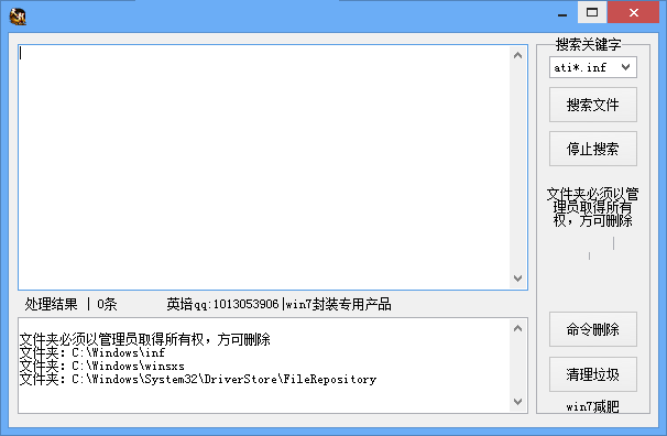 搜索关键字有:ati*.inf、nv*.inf、brmf*.inf、mdm*.inf、ph3*.inf、ph6*.inf、wia*.inf、prn*.inf