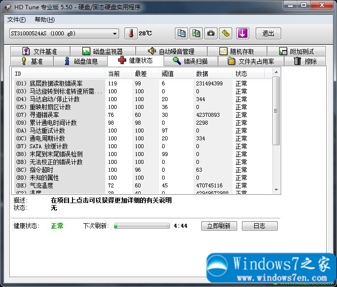 绿色软件简介:HDTune是一款小巧易用的硬盘检测工具软件,HD Tune Pro也是一款适用于移动硬盘检测工具。主要功能有硬盘传输速率检测,健康状态检测,温度检测及磁盘表面扫描等。另外,还能检测出硬盘的固件版本、序列号、容量、缓存大小以及当前的Ultra DMA模式等。虽然这些功能其它软件也有,但难能可贵的是此软件把所有这些功能积于一身,而且非常小巧,速度又快,更重要的是它是免费软件,可自由使用。
