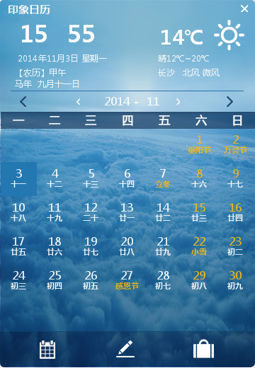 简介:桌面日历软件印象日历是一款简单易用的电脑桌面日历软件。同时,桌面日历软件印象日历还提供了天气预报、万年历、农历、节假日、节气、24节气等的查询。