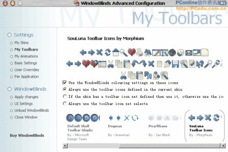 WindowBlinds还可以更换工具栏上的图标